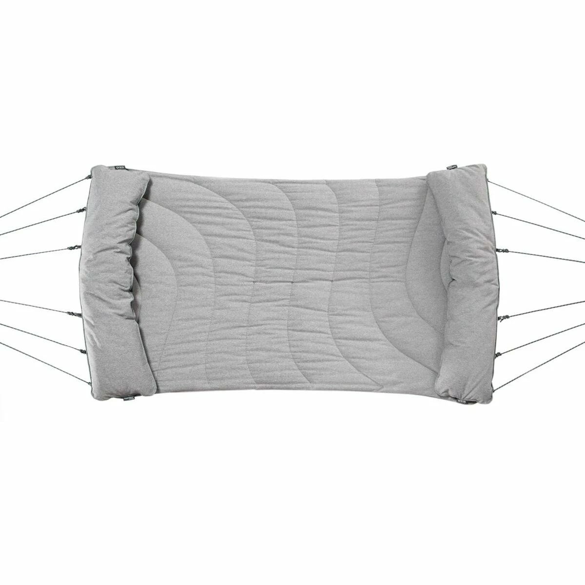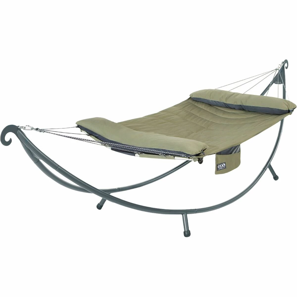- Plushly padded hammock hangs at home all year long