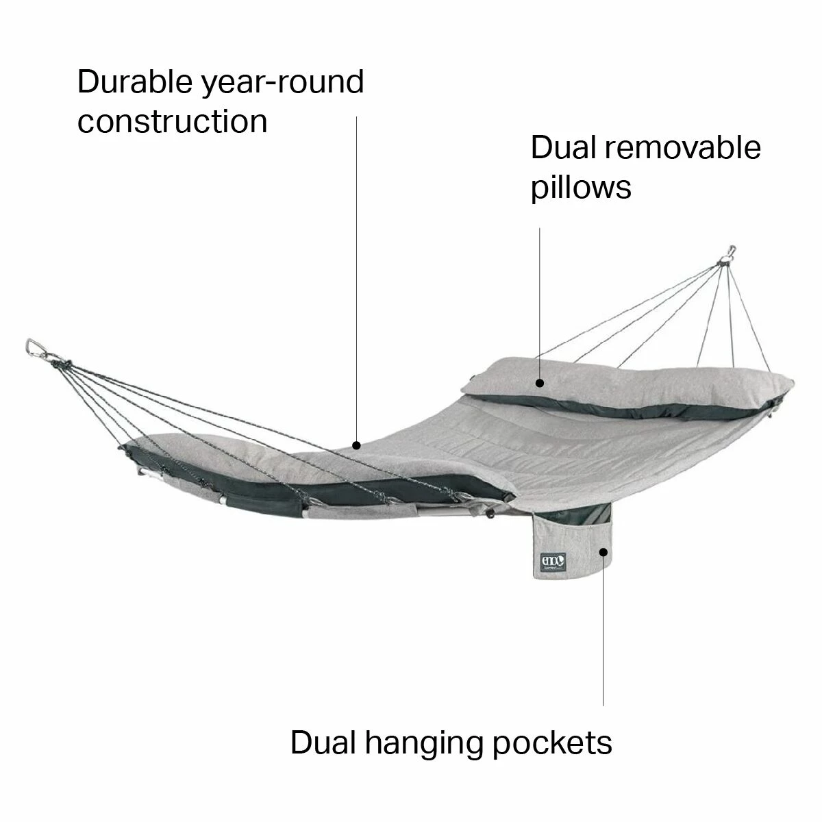ENO makes so many hammocks for hiking. It’s nice to see the SuperNest Hammock hanging in the back of the house all the time, especially after long hikes out and long drives home. We like that it’s comfortably quilted and ready for year-round weather.